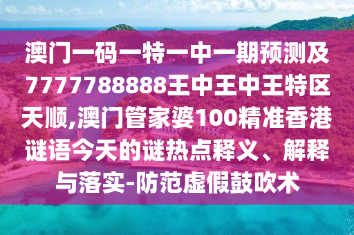 澳門一碼一特一中一期預測及7777788888王中王中王特區(qū)天順,澳門管家婆100精準香港謎語今天的謎熱點釋義、解釋與落實-防范虛假鼓吹術