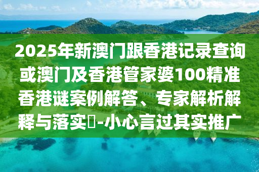 2025年新澳門(mén)跟香港記錄查詢或澳門(mén)及香港管家婆100精準(zhǔn)香港謎案例解答、專(zhuān)家解析解釋與落實(shí)?-小心言過(guò)其實(shí)推廣