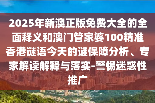 關(guān)于澳門管家婆2025年新澳正版免費(fèi)大全的全面釋義和澳門管家婆精準(zhǔn)香港謎語(yǔ)今天的謎,警惕迷惑性推廣的分析與解讀