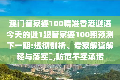 澳門管家婆100精準(zhǔn)香港謎語(yǔ)今天的謎1跟管家婆100期預(yù)測(cè)下一期:透徹剖析、專家解讀解釋與落實(shí)?,防范不實(shí)承諾
