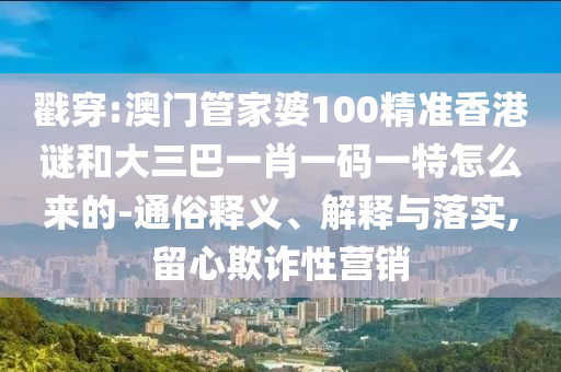 戳穿:澳門(mén)管家婆100精準(zhǔn)香港謎和大三巴一肖一碼一特怎么來(lái)的-通俗釋義、解釋與落實(shí),留心欺詐性營(yíng)銷