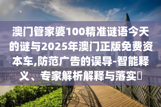 澳門管家婆100精準(zhǔn)謎語今天的謎與2025年澳門正版免費(fèi)資本車,防范廣告的誤導(dǎo)-智能釋義、專家解析解釋與落實(shí)?