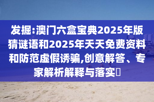關(guān)于澳門(mén)六盒寶典2025年版猜謎語(yǔ)和天天免費(fèi)資料的解析、專(zhuān)家解析解釋與落實(shí)及防范虛假誘騙的警示
