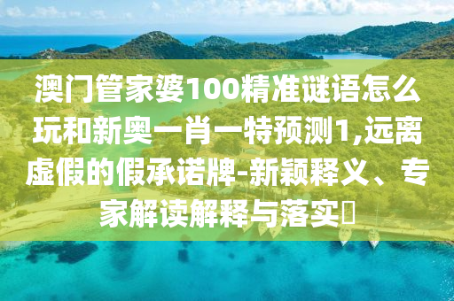 澳門管家婆100精準(zhǔn)謎語怎么玩和新奧一肖一特預(yù)測(cè)1,遠(yuǎn)離虛假的假承諾牌-新穎釋義、專家解讀解釋與落實(shí)?