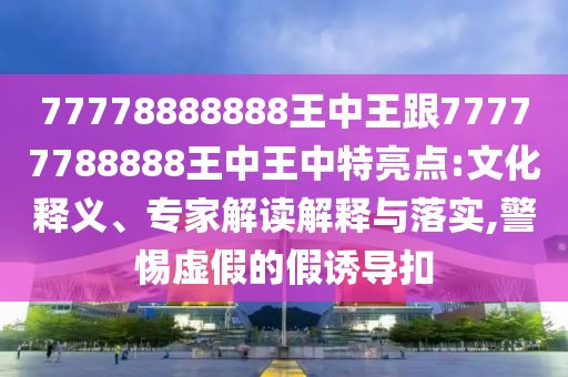 關于關鍵詞“77778888888王中王跟77777788888王中王中特亮點”的文化釋義、專家解讀解釋與落實,以及警惕虛假宣傳的文章
