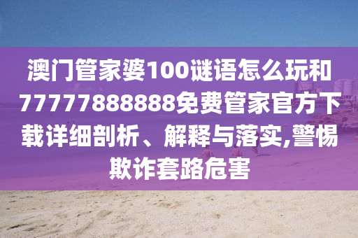澳門管家婆100謎語(yǔ)怎么玩和77777888888免費(fèi)管家官方下載詳細(xì)剖析、解釋與落實(shí),警惕欺詐套路危害