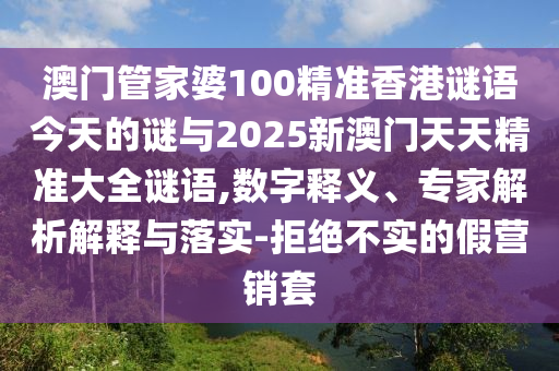 澳門管家婆100精準(zhǔn)香港謎語今天的謎與2025新澳門天天精準(zhǔn)大全謎語,數(shù)字釋義、專家解析解釋與落實(shí)-拒絕不實(shí)的假營(yíng)銷套