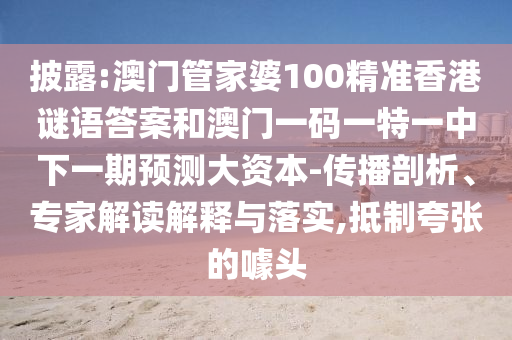 披露:澳門管家婆100精準香港謎語答案和澳門一碼一特一中下一期預測大資本-傳播剖析、專家解讀解釋與落實,抵制夸張的噱頭