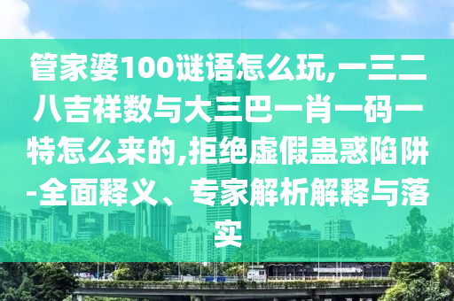 管家婆100謎語(yǔ)怎么玩,一三二八吉祥數(shù)與大三巴一肖一碼一特怎么來(lái)的的全面釋義、專家解析解釋與落實(shí)
