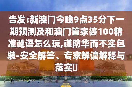 告發(fā):新澳門今晚9點35分下一期預(yù)測及和澳門管家婆100精準(zhǔn)謎語怎么玩,謹(jǐn)防華而不實包裝-安全解答、專家解讀解釋與落實?