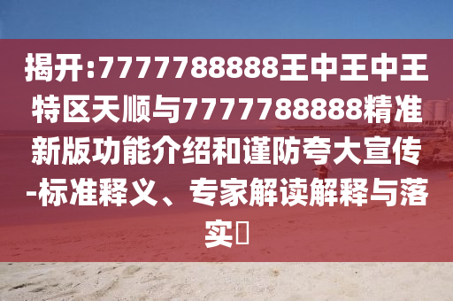 今天我們將聚焦于一個(gè)關(guān)鍵詞組合:“揭開:7777788888王中王中王特區(qū)天順與精準(zhǔn)新版功能介紹”,隨著科技的快速發(fā)展,虛假宣傳現(xiàn)象愈發(fā)嚴(yán)重,許多信息背后隱藏著不為人知的真相,本文將全面釋義和解釋這組關(guān)鍵詞,并提醒公眾警惕虛假宣傳。