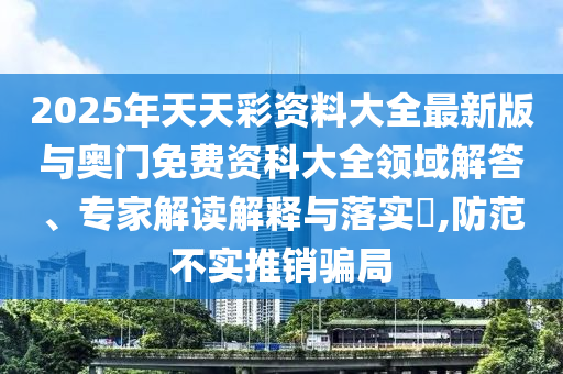 2025年天天彩資料大全最新版與奧門免費資科大全領域解答、專家解讀解釋與落實?,防范不實推銷騙局