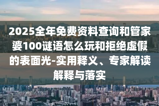 2025全年免費(fèi)資料查詢和管家婆100謎語(yǔ)怎么玩和拒絕虛假的表面光-實(shí)用釋義、專家解讀解釋與落實(shí)