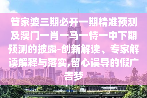 管家婆三期必開一期精準(zhǔn)預(yù)測及澳門一肖一馬一恃一中下期預(yù)測的披露-創(chuàng)新解讀、專家解讀解釋與落實(shí),留心誤導(dǎo)的假廣告夢