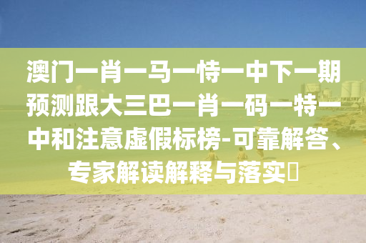 澳門一肖一馬一恃一中下一期預測跟大三巴一肖一碼一特一中:可靠解答、專家解讀解釋與落實?