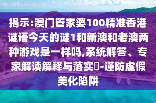 關(guān)于揭示澳門(mén)管家婆100精準(zhǔn)香港謎語(yǔ)今天的謎底,以及新澳和老澳兩種游戲是否一樣的問(wèn)題,同時(shí)需要警惕虛假美化陷阱的系統(tǒng)解答、專家解讀解釋與落實(shí)的問(wèn)題,以下是我對(duì)此的全面解析。
