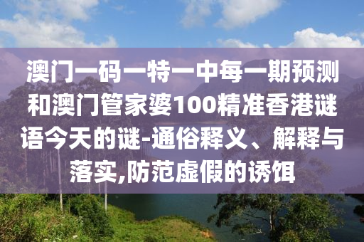 關(guān)于澳門一碼一特一中每一期預(yù)測和澳門管家婆100精準(zhǔn)香港謎語今天的謎的通俗釋義、解釋與落實(shí),以及防范虛假的誘餌