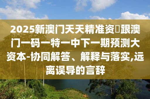 2025新澳門天天精準資枓跟澳門一碼一特一中下一期預(yù)測大資本-協(xié)同解答、解釋與落實,遠離誤導(dǎo)的言辭