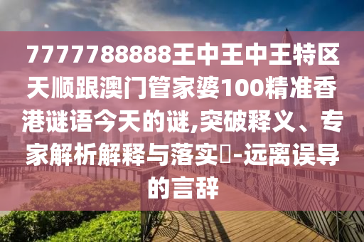 7777788888王中王中王特區(qū)天順跟澳門管家婆100精準(zhǔn)香港謎語(yǔ)今天的謎,突破釋義、專家解析解釋與落實(shí)?-遠(yuǎn)離誤導(dǎo)的言辭