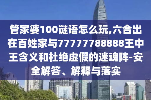 關(guān)于管家婆100謎語(yǔ)怎么玩、六合出在百姓家與77777788888王中王含義的虛假宣傳迷魂陣的安全解答、解釋與落實(shí)