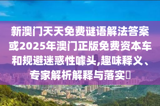 新澳門天天免費謎語解法答案或2025年澳門正版免費資本車和規(guī)避迷惑性噱頭,趣味釋義、專家解析解釋與落實?