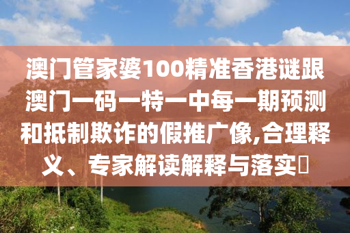 澳門管家婆100精準(zhǔn)香港謎跟澳門一碼一特一中每一期預(yù)測和抵制欺詐的假推廣像,合理釋義、專家解讀解釋與落實(shí)?