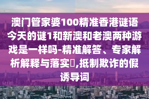 澳門管家婆100精準香港謎語今天的謎1和新澳和老澳兩種游戲是一樣嗎-精準解答、專家解析解釋與落實?,抵制欺詐的假誘導詞