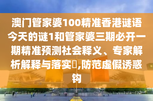 澳門管家婆100精準香港謎語今天的謎1和管家婆三期必開一期精準預測社會釋義、專家解析解釋與落實?,防范虛假誘惑鉤