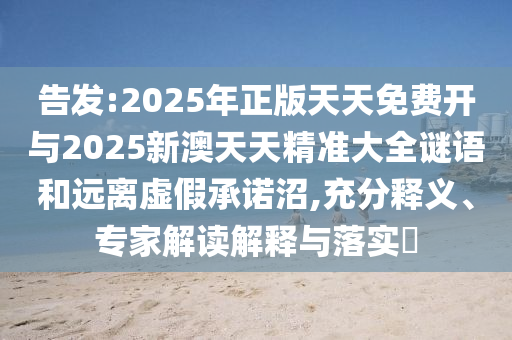 “告發(fā):2025年正版天天免費開與2025新澳天天精準(zhǔn)大全謎語”這樣的宣傳關(guān)鍵詞需要我們保持警惕,理性判斷其真實性和可信度,我們也需要關(guān)注其落實情況和具體實施計劃,以確保我們的權(quán)益得到保障。