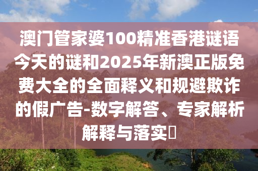 澳門管家婆100精準(zhǔn)香港謎語(yǔ)今天的謎和2025年新澳正版免費(fèi)大全的全面釋義和規(guī)避欺詐的假?gòu)V告-數(shù)字解答、專家解析解釋與落實(shí)?