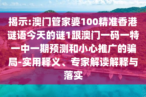 關(guān)于揭示澳門管家婆100精準香港謎語今天的謎以及澳門一碼一特一中一期預測實用釋義、專家解讀解釋與落實和小心推廣的騙局的文章內(nèi)容如下: