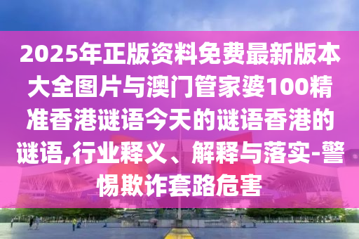 2025年正版資料免費最新版本大全圖片與澳門管家婆100精準(zhǔn)香港謎語今天的謎語香港的謎語,行業(yè)釋義、解釋與落實-警惕欺詐套路危害